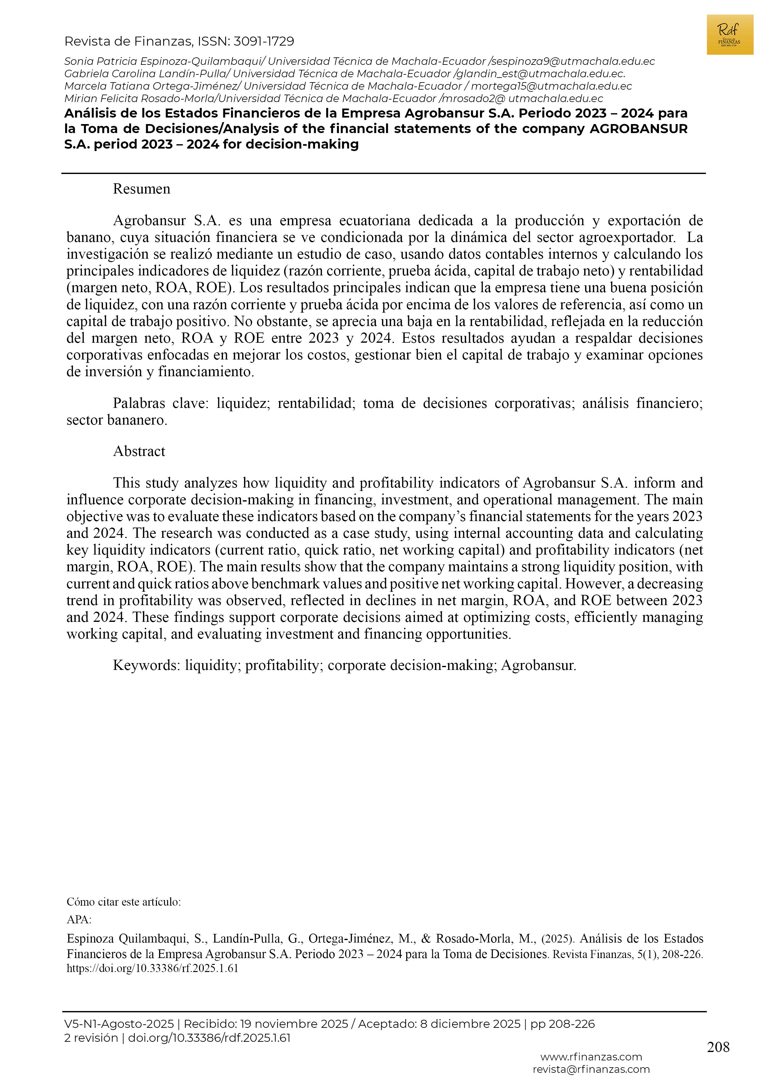 • Análisis de los Estados Financieros de la Empresa Agrobansur S.A. Periodo 2023 – 2024 para la Toma de Decisiones